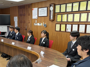 役員が集まる入社式の中で、緊張した面持ちのみなさん。